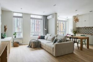 Scandi style usually uses soft whites, warm greys, muted beiges as the color base for all of the interior. Try using some subtle accents of other colours to really make them pop, but not overwhelm the palette. Various écru shades brighten the room, especially if it doesn’t get a lot of daylight.