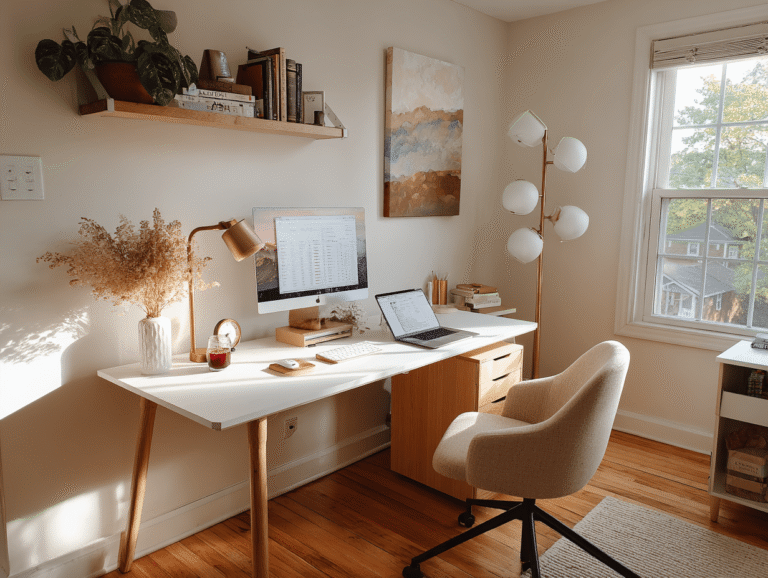 Move your desk closer to natural light if you can, and bring in something tactile, like a wooden desktop, a cork noticeboard or a linen lampshade – anything that feels more “alive” than plastic. Even adding a single living element, like a small plant, can soften the feel of a space.
